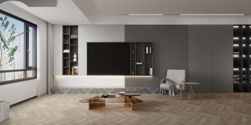 | 客厅2 | 悬空收纳柜的电视背景墙,开放隐藏、不同材质颜色的合理比例分化 | ||